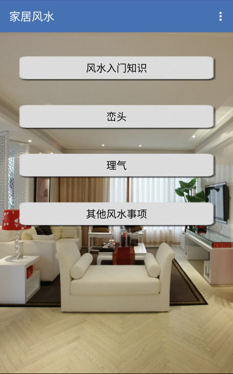 本软件是手机家居风水程序android版,android系统V1.6及以上版本手机和平板电脑,都可以安装使用。